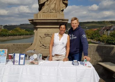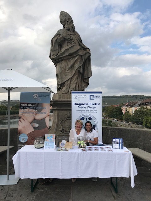 Stadtfest Würzburg 2018 Fundraising im Rahmen des Stadtfestes 2018: Die Stiftung „Forschung hilft“ war mit einem Stand auf der Alten Mainbrücke vertreten und organisierte eine Lostombala zugunsten der Krebsforschung.